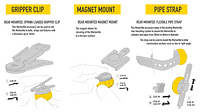 The magnet, rubber band and crocodile clip allow the Markerlite to be easily and single-handedly attached and removed from objects – perfect for positioning within the Hazardous area with the minimum of effort.