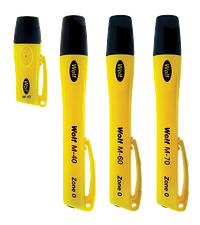 La linterna de seguridad LED Wolf ATEX es una linterna de seguridad LED de celda primaria certificada ATEX e IECEx que utiliza la última tecnología para ofrecer excelente rendimiento, robustez y confiabilidad para un uso seguro en atmósferas y gases potencialmente explosivos de las zonas 1 y 2. de polvo en las zonas 21 y 22 (TR/TS-30+). También está disponible una versión de Zona 0 (TR/TS-35+). Aprobación del grupo I para uso en aplicaciones mineras.
