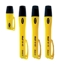 A lanterna de segurança Wolf ATEX com LED é uma lanterna de segurança LED de célula primária com certificação ATEX e IECEx que usa a tecnologia mais recente para oferecer excelente desempenho, robustez e confiabilidade para uso seguro em zonas 1 e 2 com gás potencialmente explosivo e atmosferas de poeira nas zonas 21 e 22 (TR /TS-30+). Uma versão Zona 0 também está disponível (TR/TS-35+). Aprovação Grupo I para uso em aplicações de mineração.